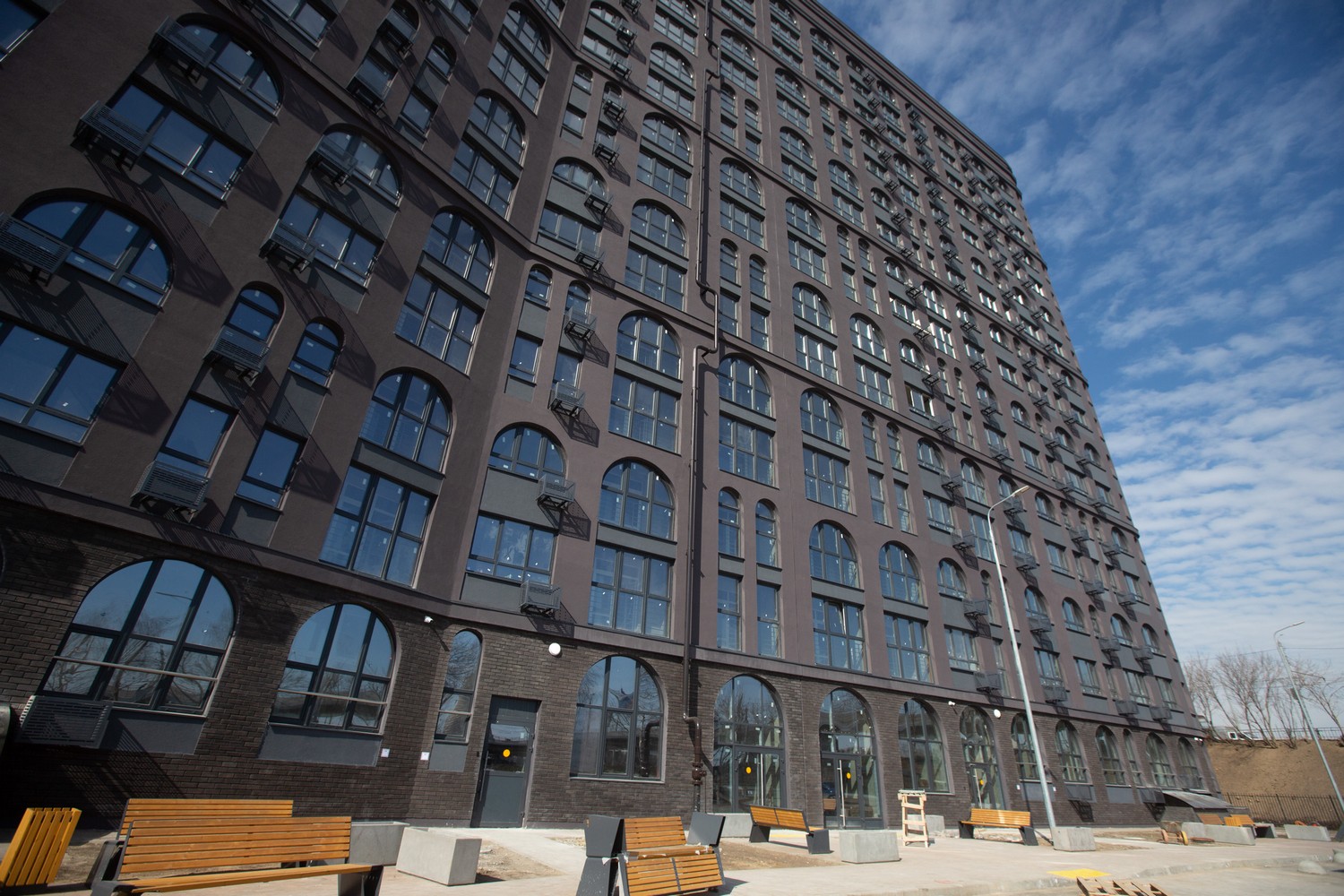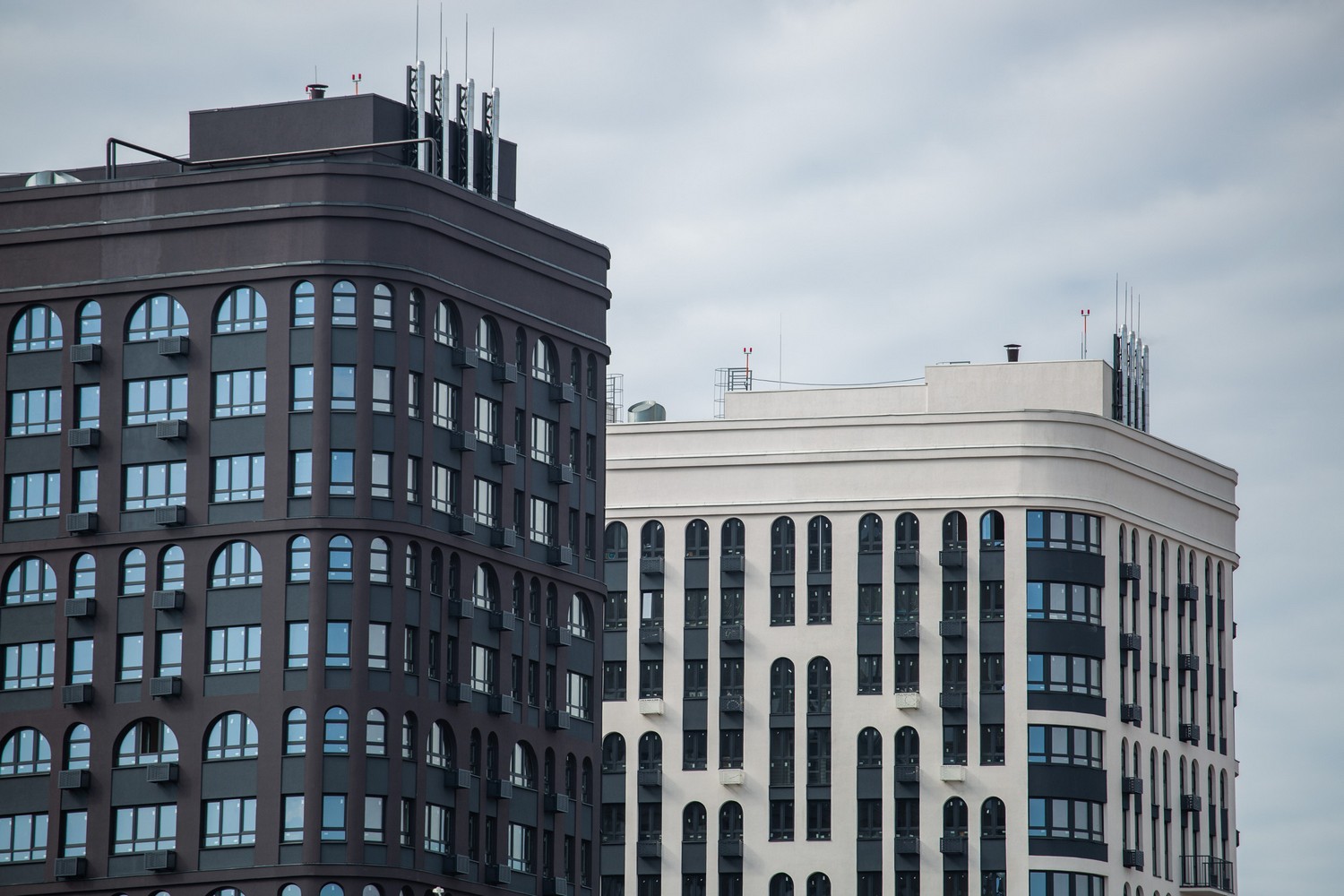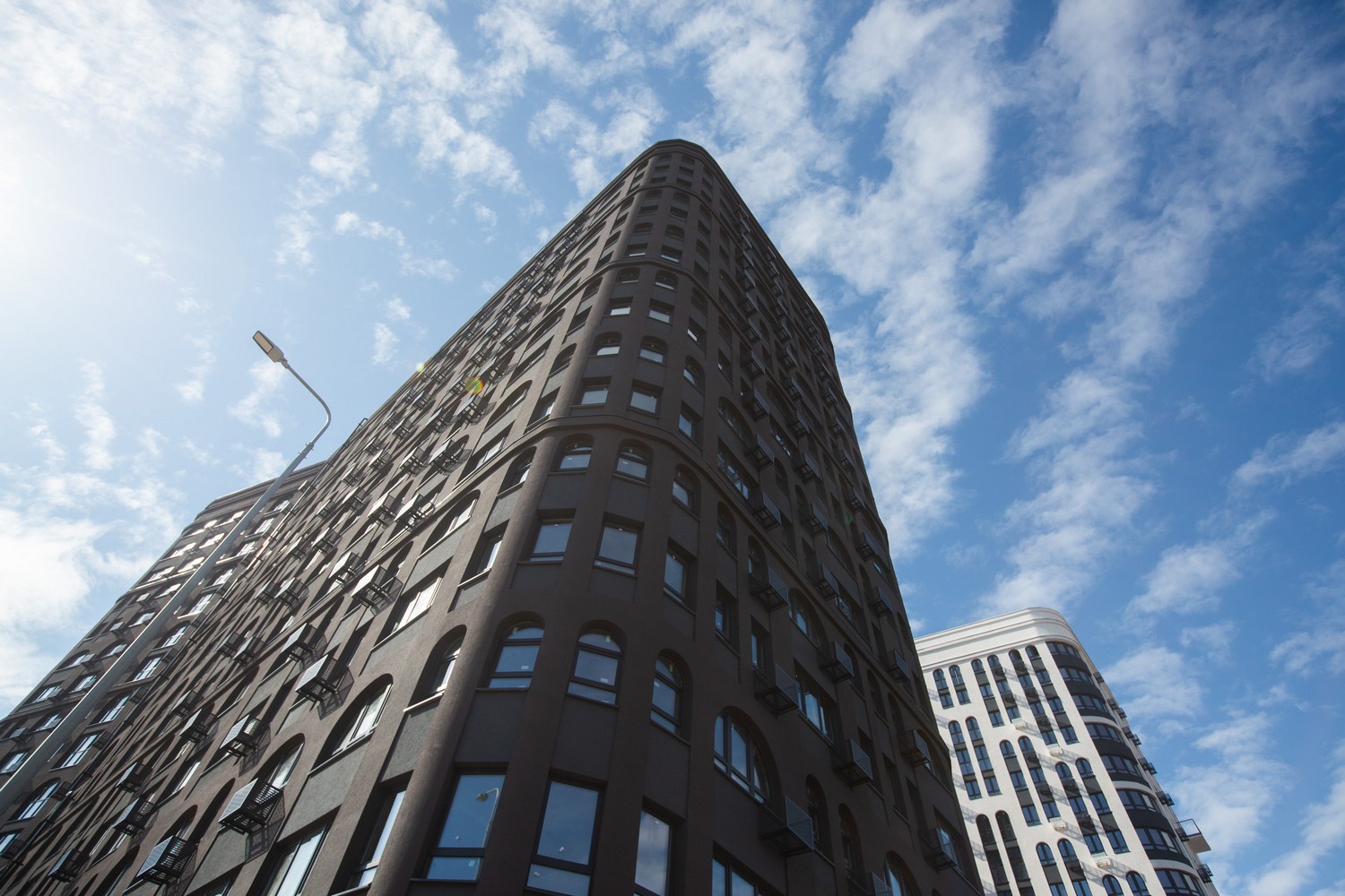Ощутите динамику и энергию города благодаря стилевому решению фасадов с четкой геометрией, сочетающимися плавными линиями и гармоничной палитрой двух домов. Арочная форма окон добавляет шарма визуальному образу и ярко выделяет комплекс, задавая тренды развития всего района.