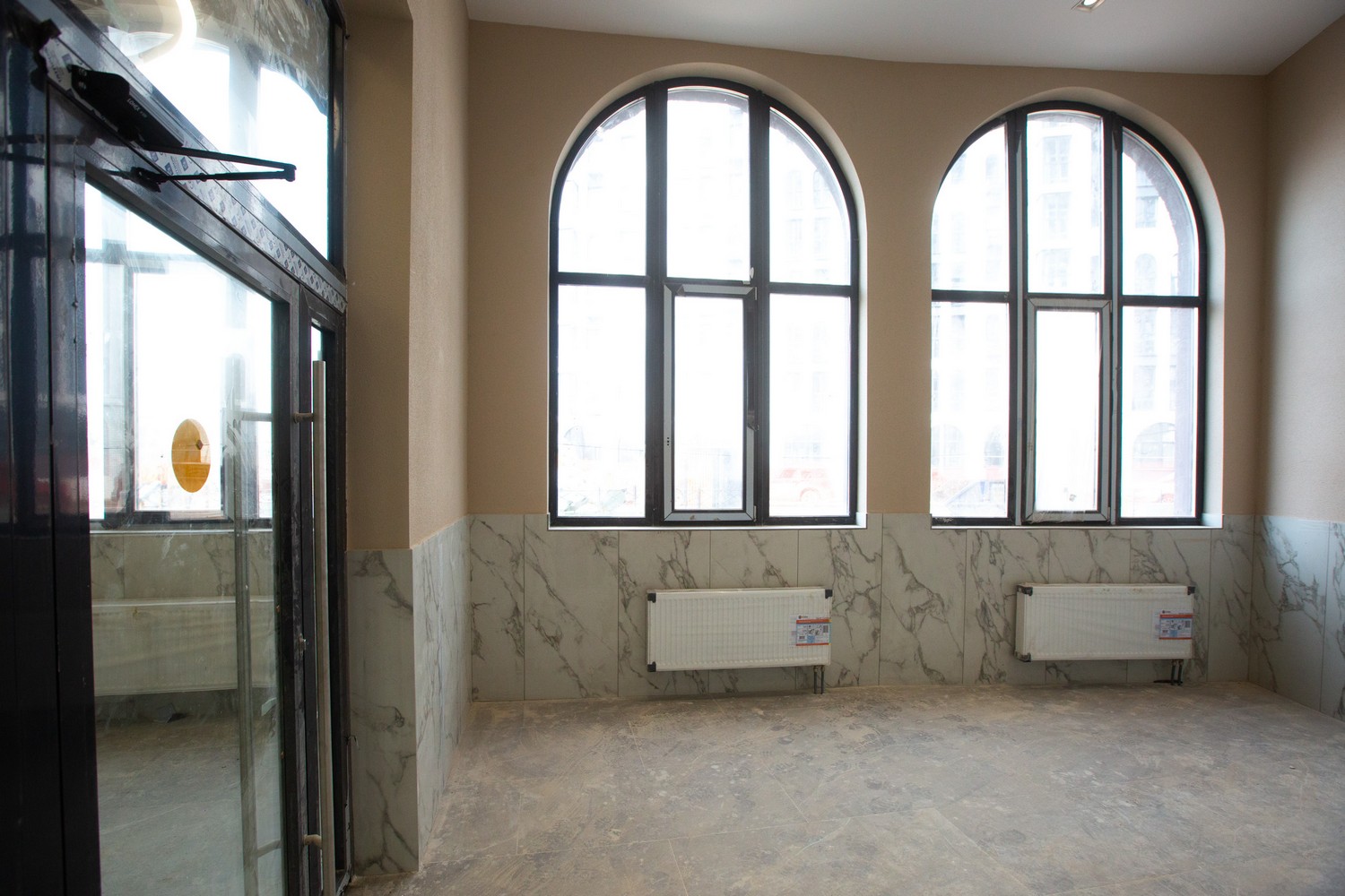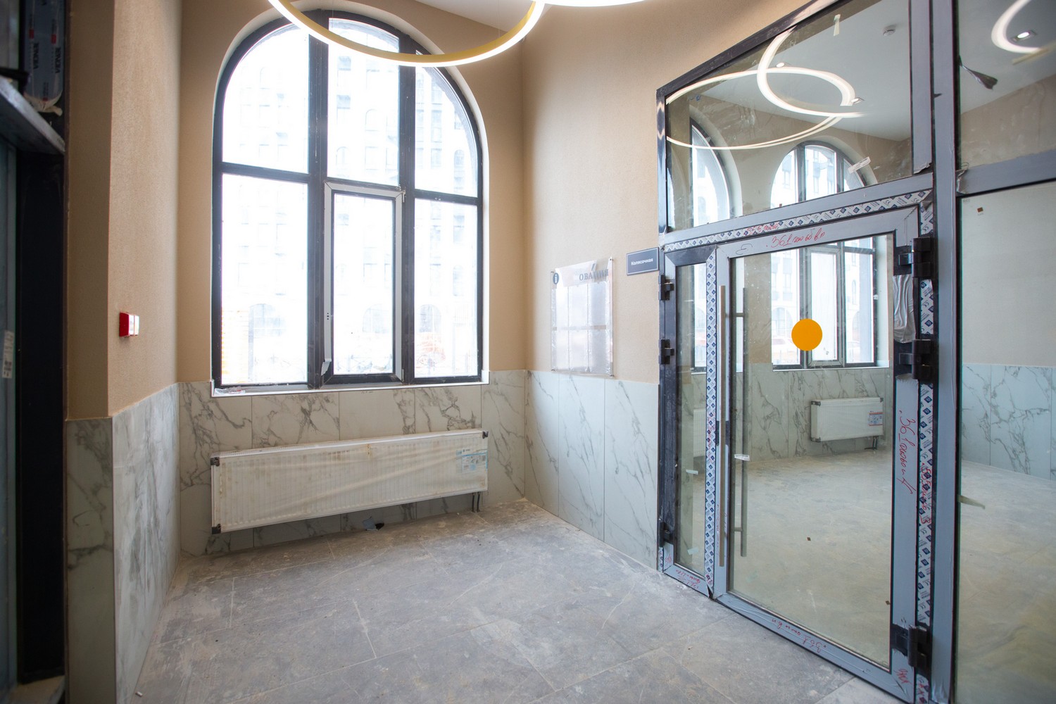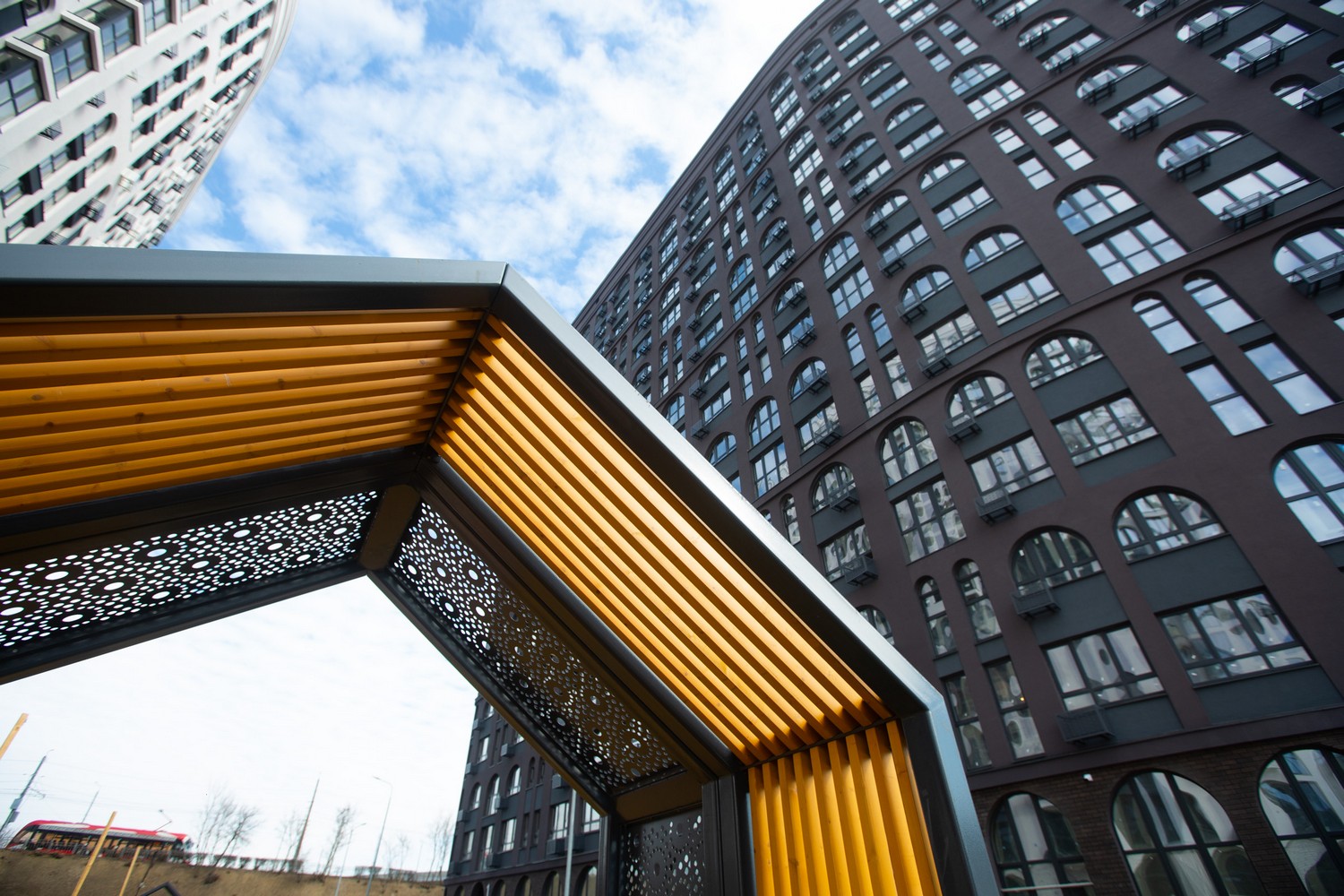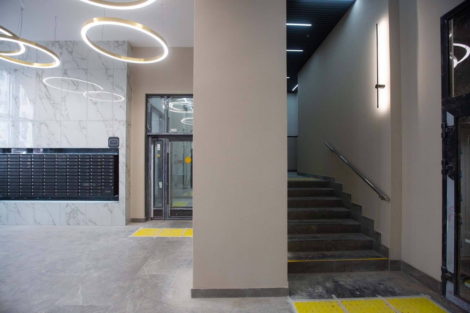Ощутите динамику и энергию города благодаря стилевому решению фасадов с четкой геометрией, сочетающимися плавными линиями и гармоничной палитрой двух домов. Арочная форма окон добавляет шарма визуальному образу и ярко выделяет комплекс, задавая тренды развития всего района.