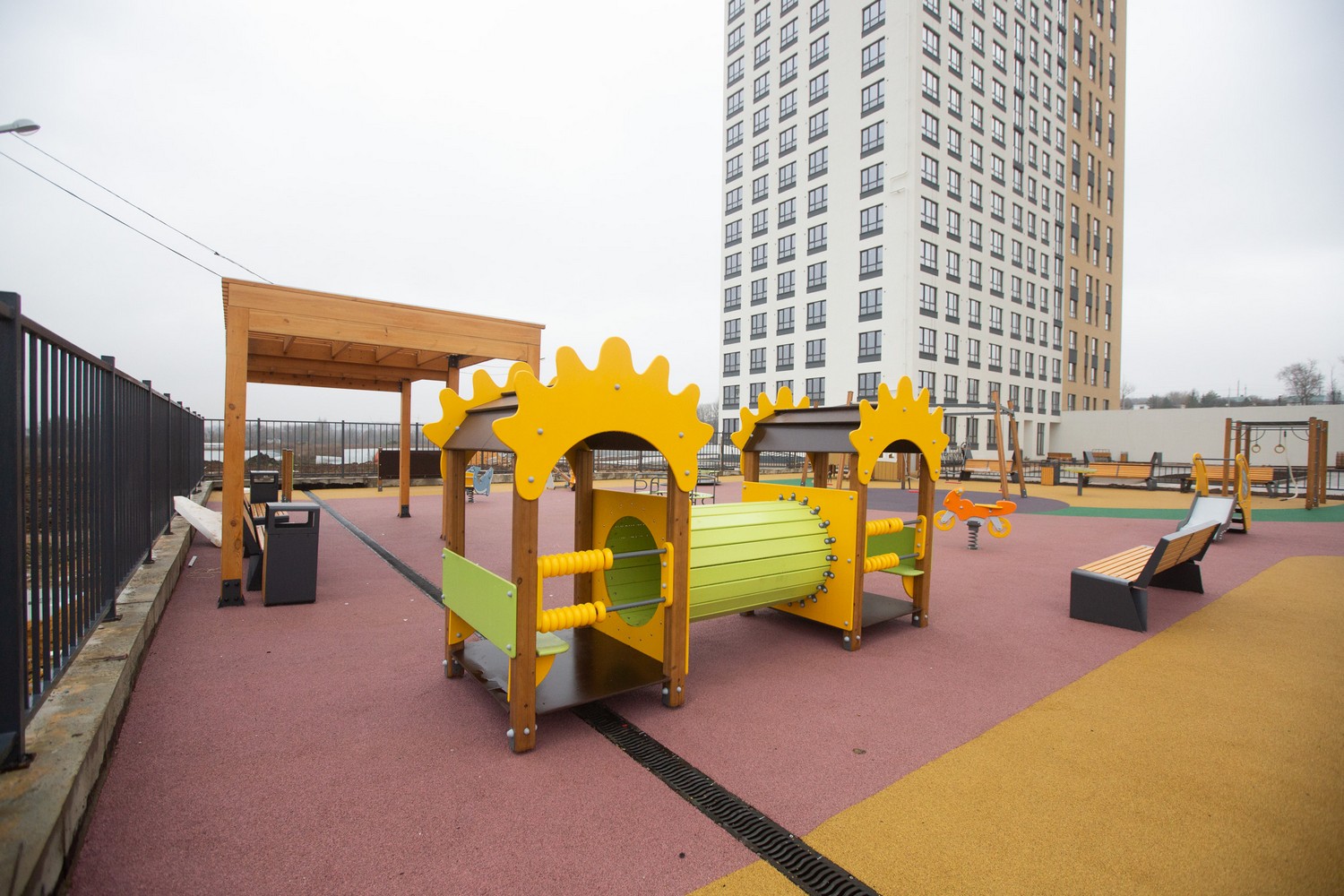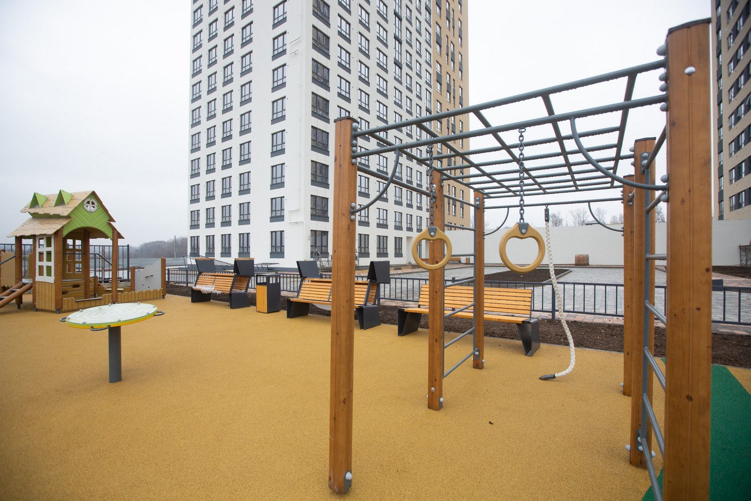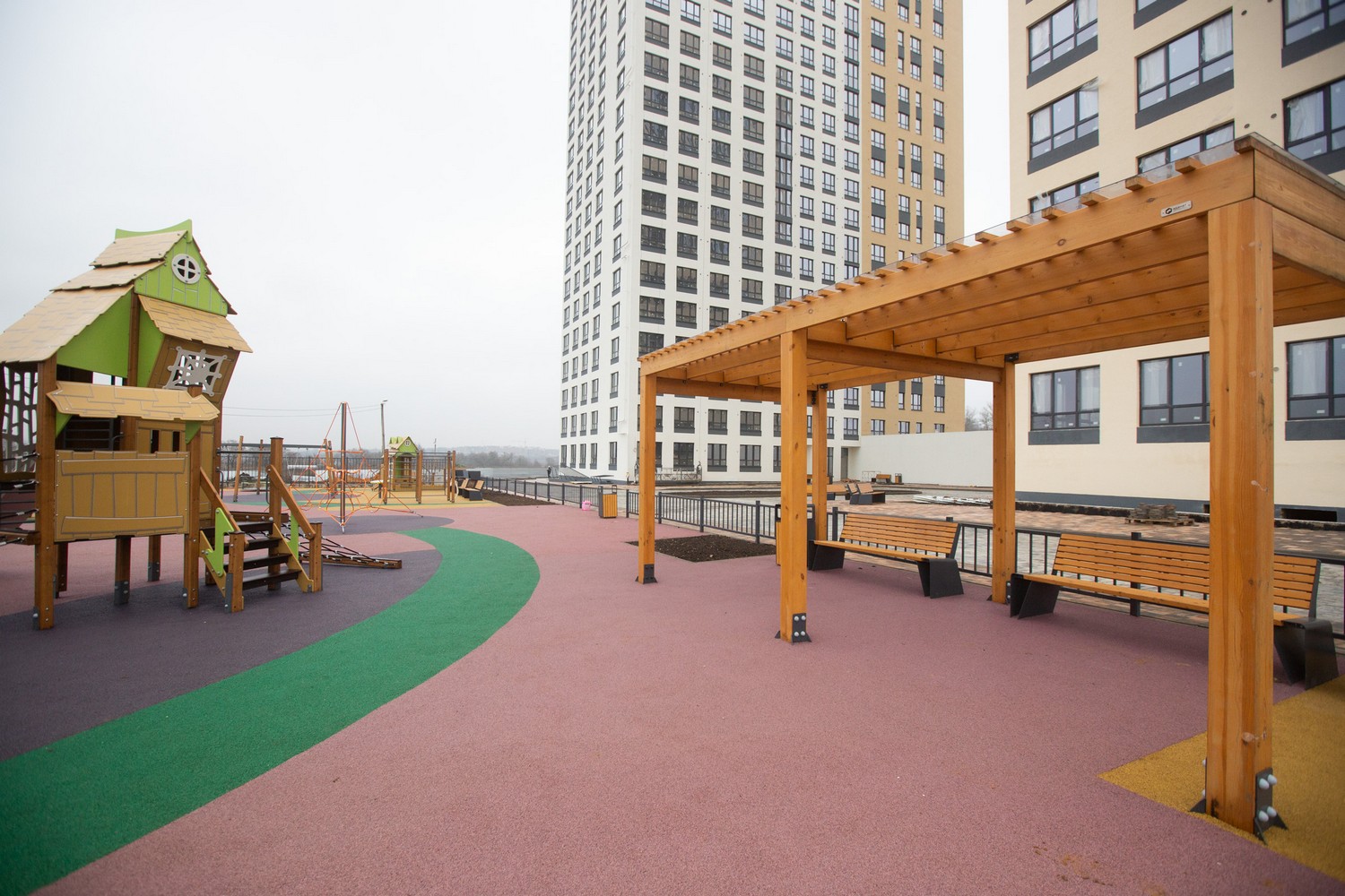 Экополис, в котором строится дом, не только окружен лесами и рекой, но и имеет свою большую парковую зону и специальные лаундж – зоны на дворовой территории. Только представьте, как вечерами приятно прогуляться перед сном на свежем воздухе с родными и близкими или организовать вечерний ужин с соседями!