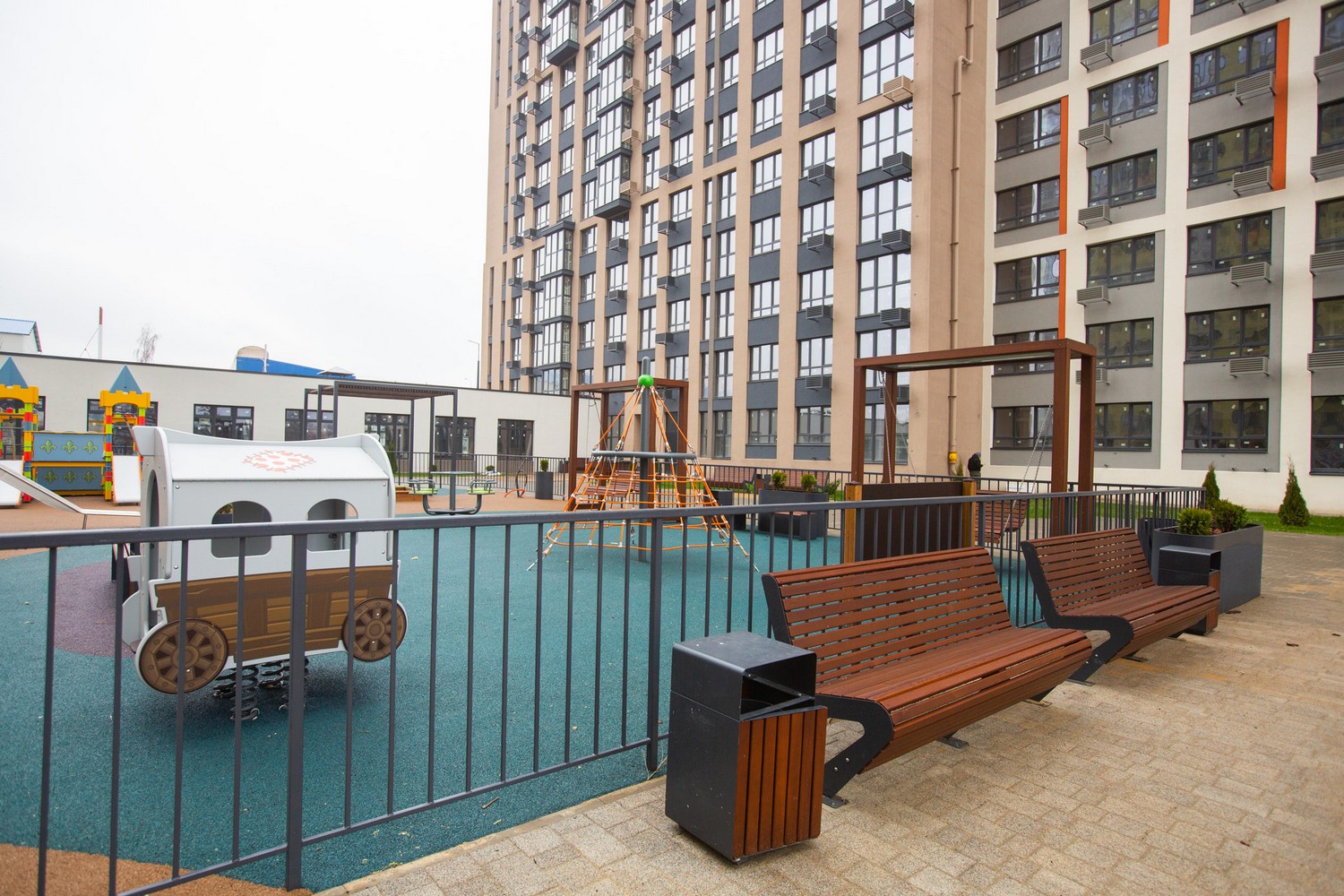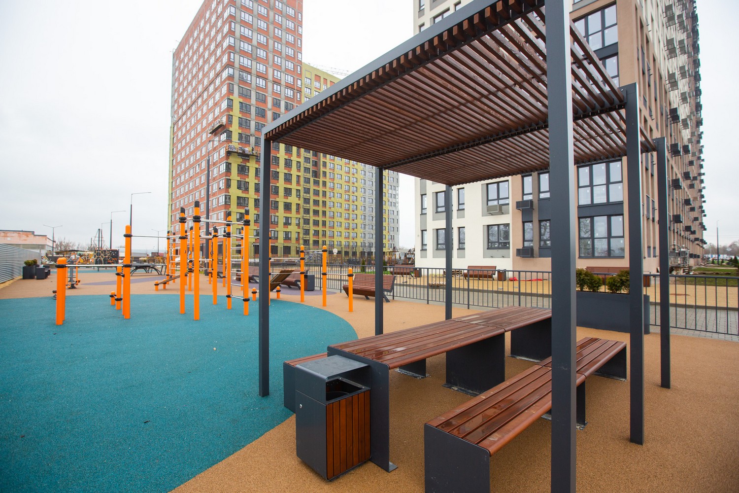 За счет детального спроектированного дворового пространства дети разных возрастов и их родители смогут больше проводить времени на свежем воздухе, не выезжая за пределы комплекса. На территории расположились спортивные зоны с современным инвентарем для занятий на свежем воздухе, уединенные места отдыха для каждого. Дворовое пространство украшено растительными и цветочными композициями, которые круглый год создают атмосферу уединения.