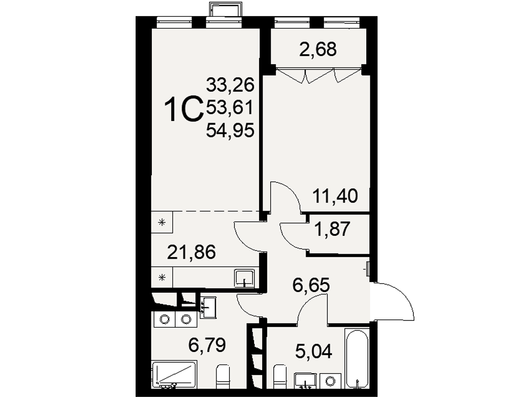 Площадь: 54.95 м2